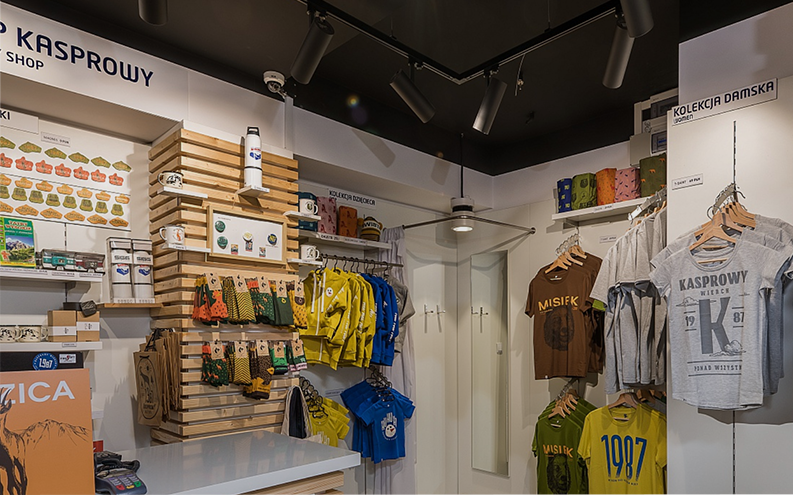 Kolekcje pamiątkowych gadżetów i linia markowych ubrań dostępne są w sklepie na Kasprowym Wierchu. Wszystkie artykuły zostały zaprojektowane na specjalne zamówienie Polskich Kolei Linowych.